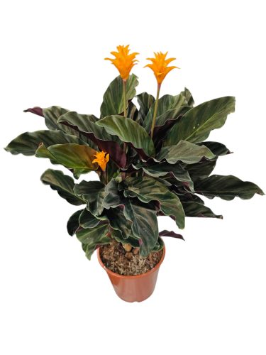 A Calathea crocata, vagyis sáfrányos zebralevél, egy elegáns és különleges trópusi szobanövény, amelyet selymes, sötétzöld levelei és feltűnő, élénk narancssárga virágai tesznek igazán egyedivé. A Calathea-félék közül ez a faj különösen látványos, hiszen virágzása a téli hónapokban hoz színt az otthonodba.